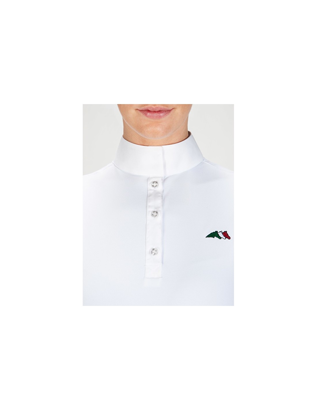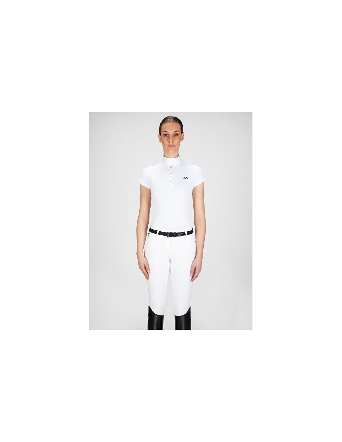Polo de competición de manga corta para mujer confeccionado en material X-Premium elástico y transpirable.