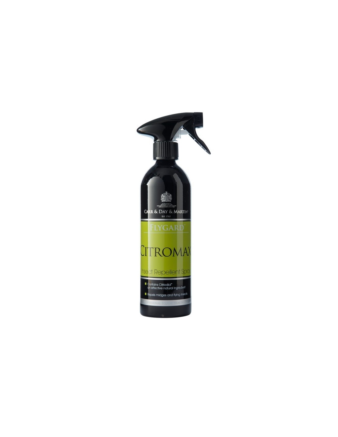 El repelente Carr & Day & Martin Flygard CITROMAX es un producto específicamente formulado para la protección de caballos contra moscas, garrapatas y otros insectos que puedan causar picaduras e infestaciones en los animales. Su composición se basa en aceites naturales de citronela y geraniol, ingredientes conocidos por sus propiedades repelentes hacia los insectos.