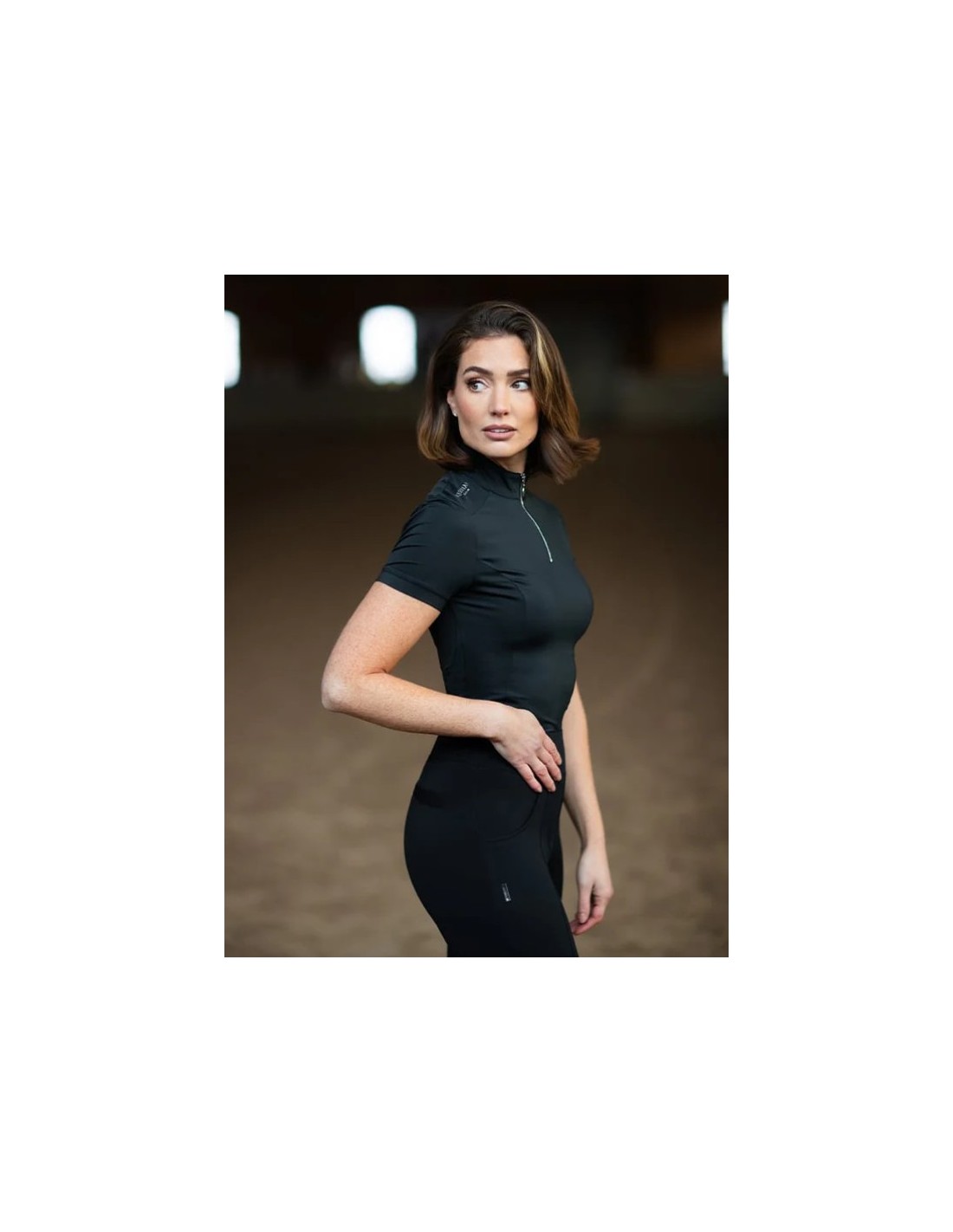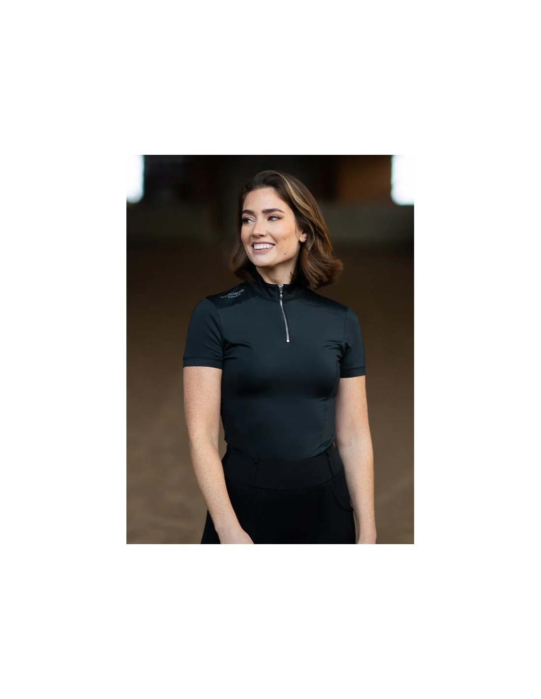 Esta camiseta de equitación presenta un elegante diseño burdeos con una cremallera negra en la parte delantera. Está confeccionada con un material ultrafino de secado rápido, transpirable y con efecto refrescante. Su característica especial es que cuenta con un factor de protección UV 35. Te protege del sol y, con su tacto refrescante, reduce la temperatura de tu piel entre 1 y 2 °C. El material contiene posos de café reciclados, lo que funciona como un inhibidor de olores. Esta función mantiene la camiseta fresca durante más tiempo, lo que significa menos lavados. Mejor para la camiseta, mejor para el planeta.