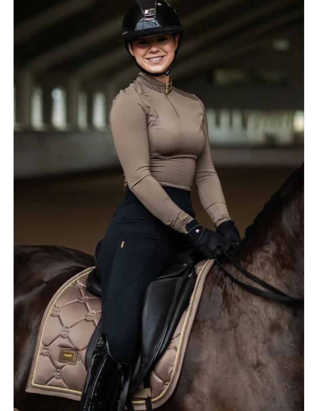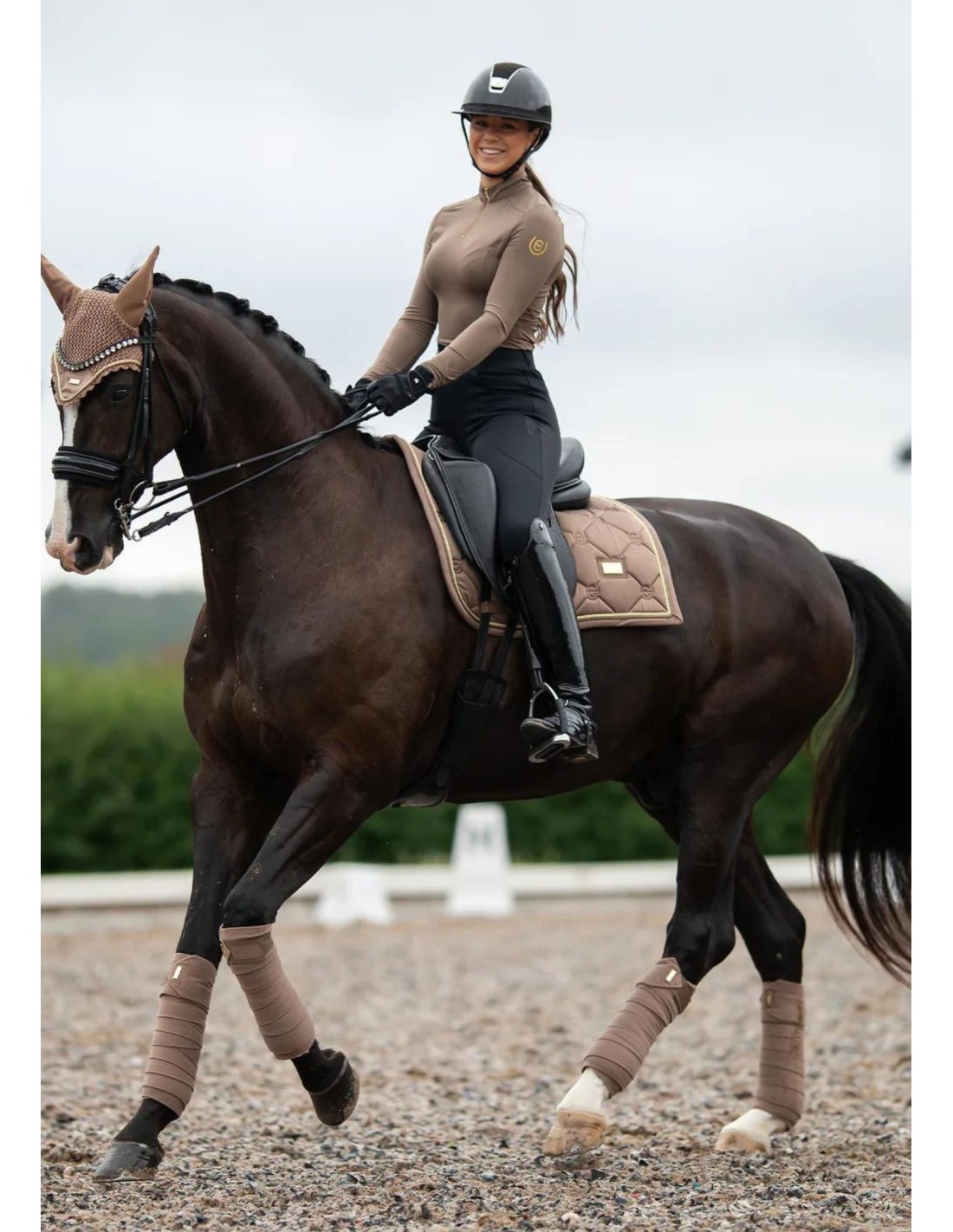 Está confeccionada en un material brillante y resistente a la suciedad que respira bien y mantiene a tu caballo seco durante las sesiones de entrenamiento. Está acolchada con el elegante patrón Equestrian Stockholm.